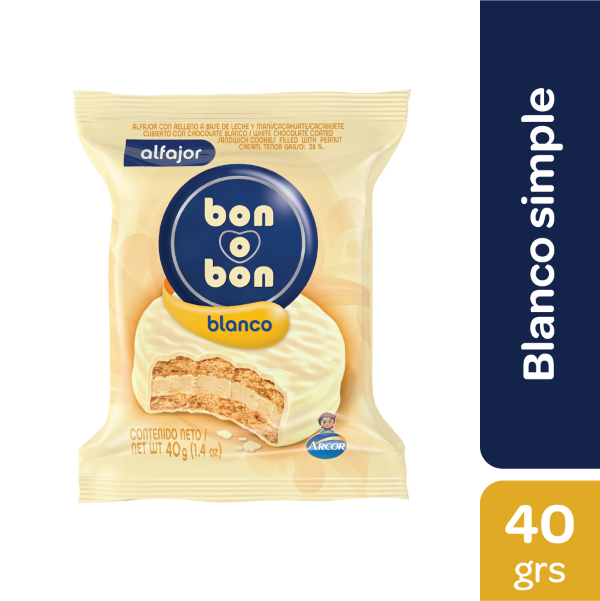 Alfajor bon o bon blanco x40 grs